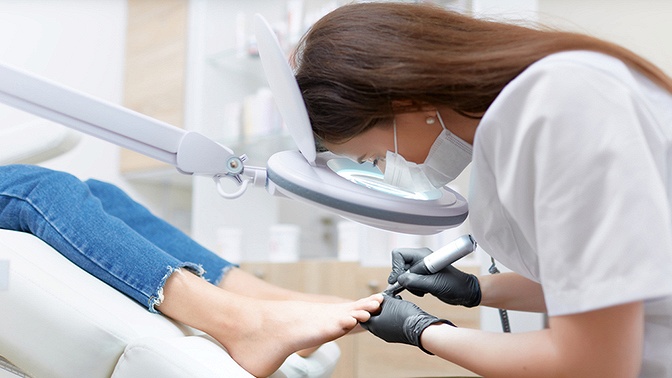 Медицинский педикюр — лечебно-профилактическая процедура, а не простой гигиенический уход за ступнями. Он выполняется деликатно, с использованием стерильных инструментов, и предназначен, прежде всего, для людей, которые страдают заболеваниями кожи и ногтей.
